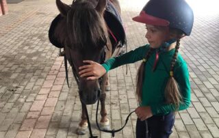 - Postępowanie z koniem – czyli nauka odpowiedniego zachowania wobec zwierzęcia, która jest pierwszym krokiem do nawiązania relacji i współpracy z koniem.