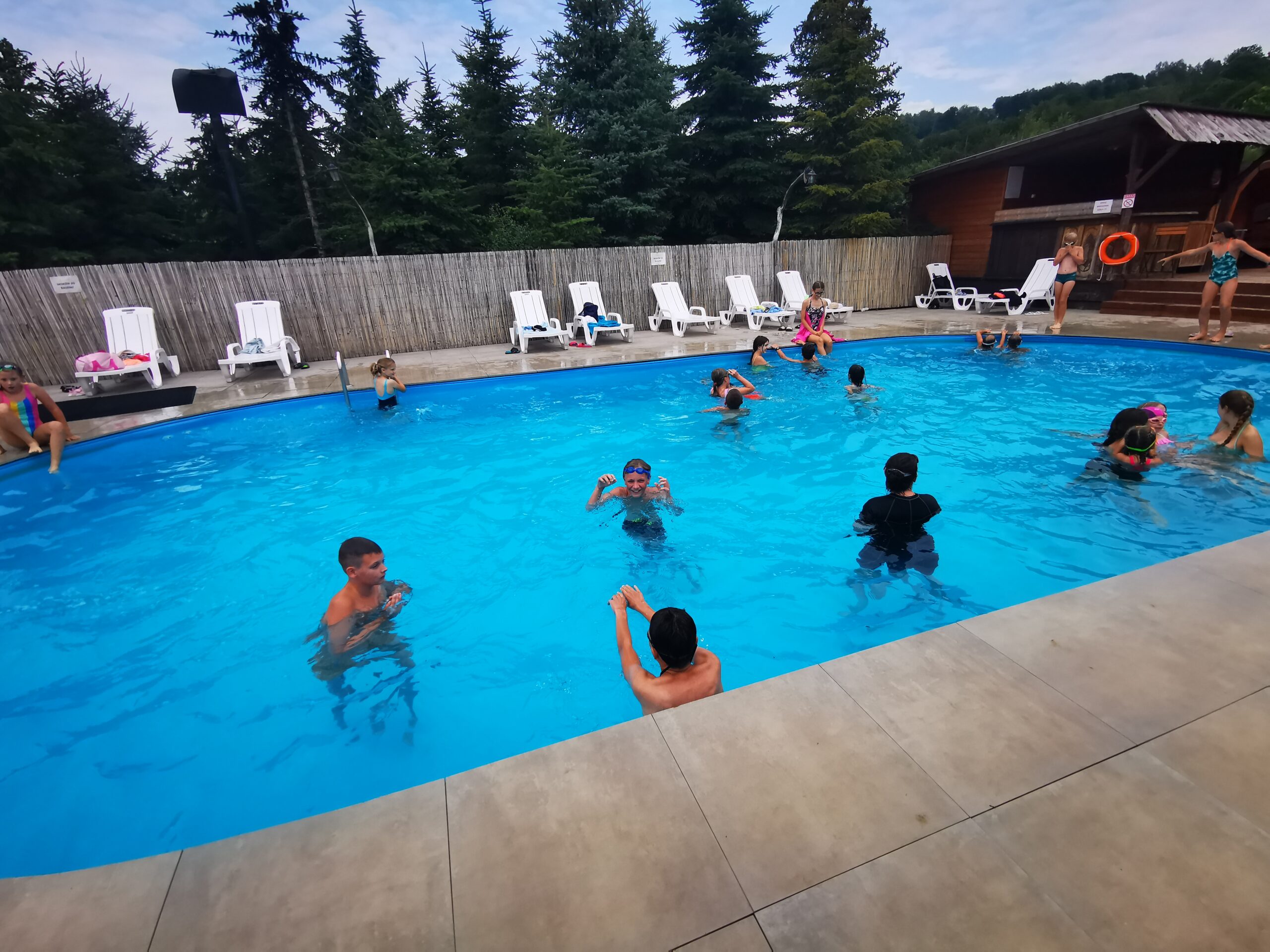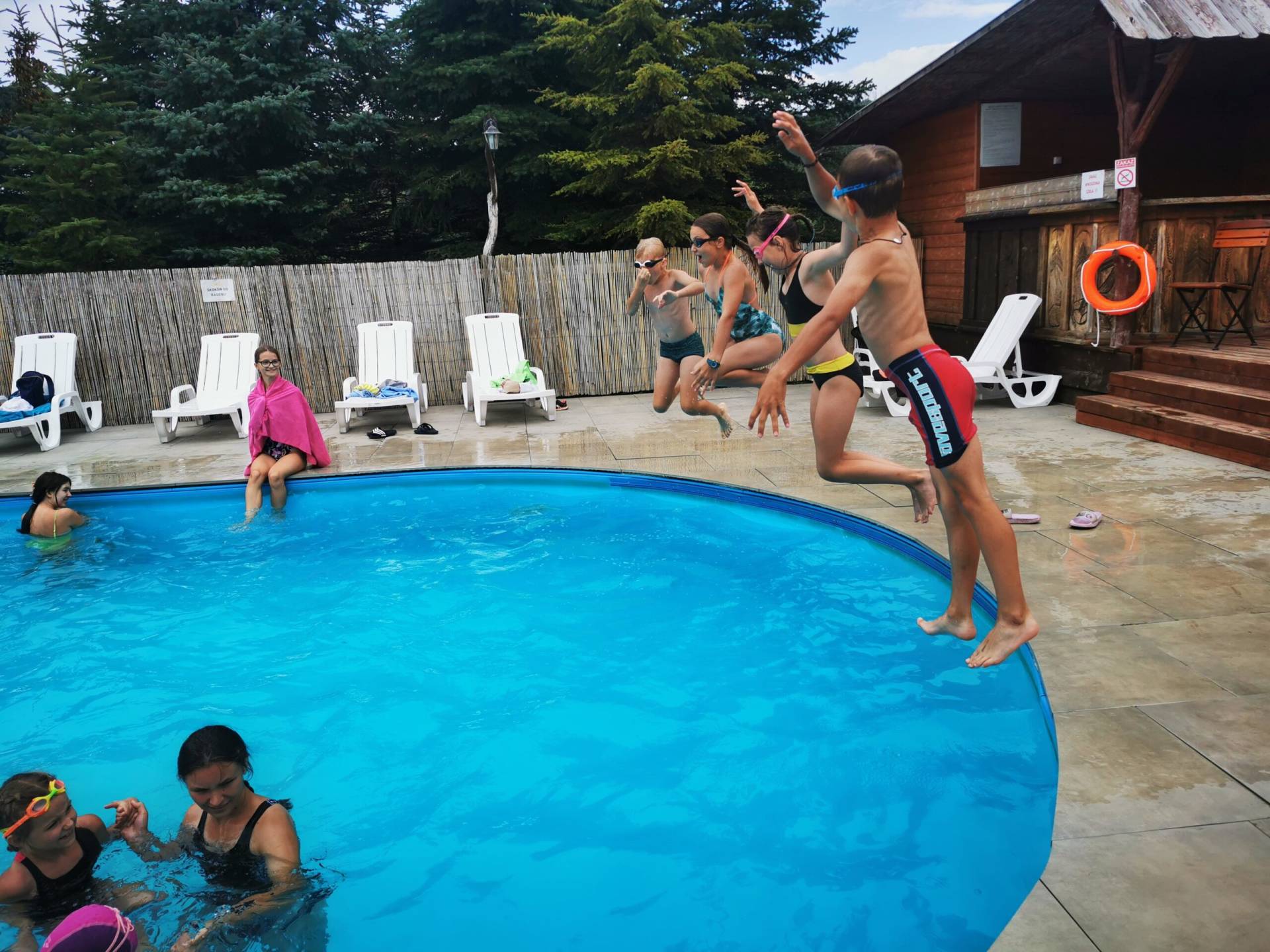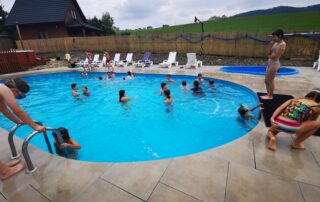 Nasz basen to doskonałe miejsce na rozrywkę i relaks. Zanurz się w zabawie w otoczeniu pięknej przyrody. Całość pod kontrolą doświadczonego ratownika. Bezpieczna rozrywka dla wszystkich!